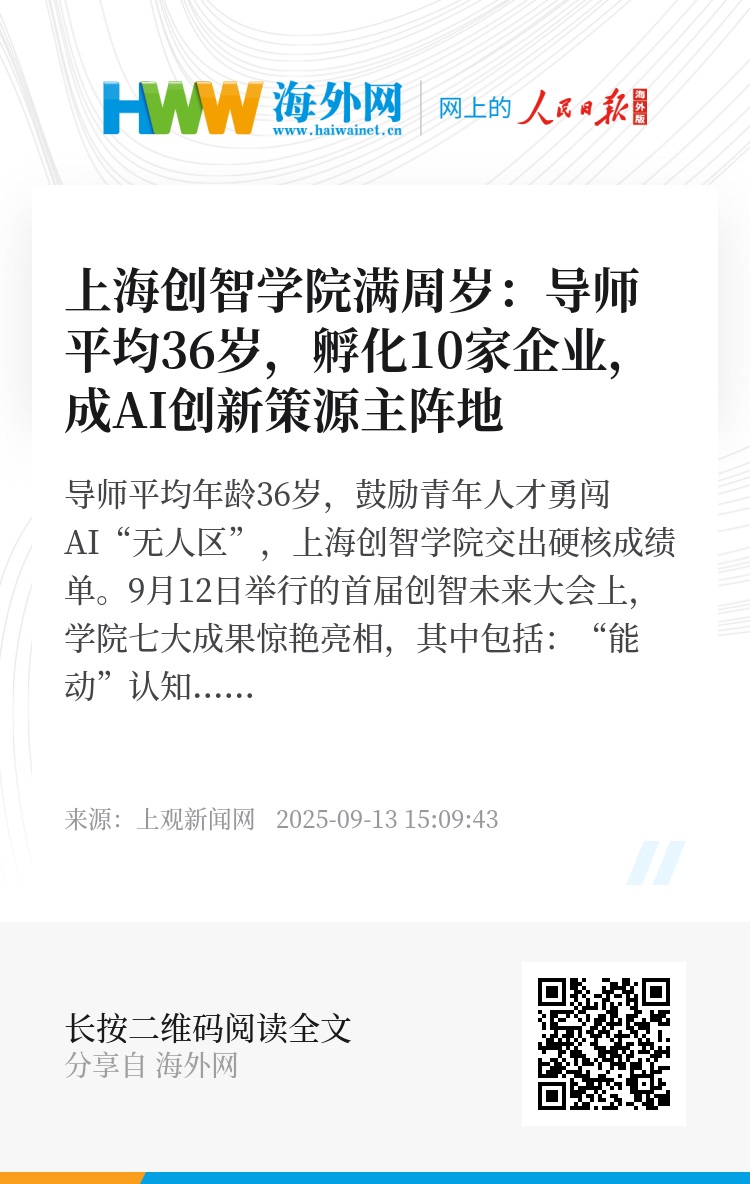 作为上海人工智能发展的“青年阵地”,创智学院的一周年实践,不仅为全球AI领域输送了“中国青年力量”,更以“技术突破+产业落地+人才培养”的一体化模式,为上海建设具有全球影响力的科技创新中心注入了持久动能。未来,学院将继续以敢为人先的魄力、求真务实的作风,深化教育科技人才一体化改革,打造全球人工智能创新策源地,赋能全球人工智能发展。