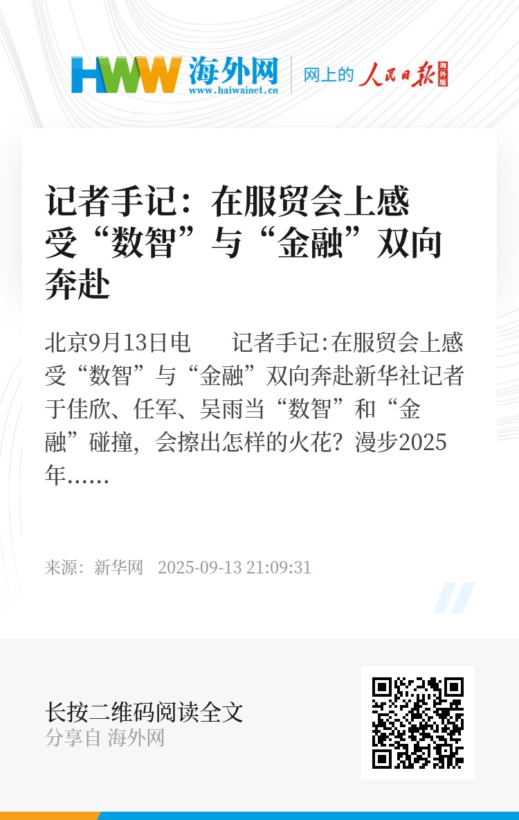 新华社北京9月13日电 记者手记:在服贸会上感受“数智”与“金融”双向奔赴