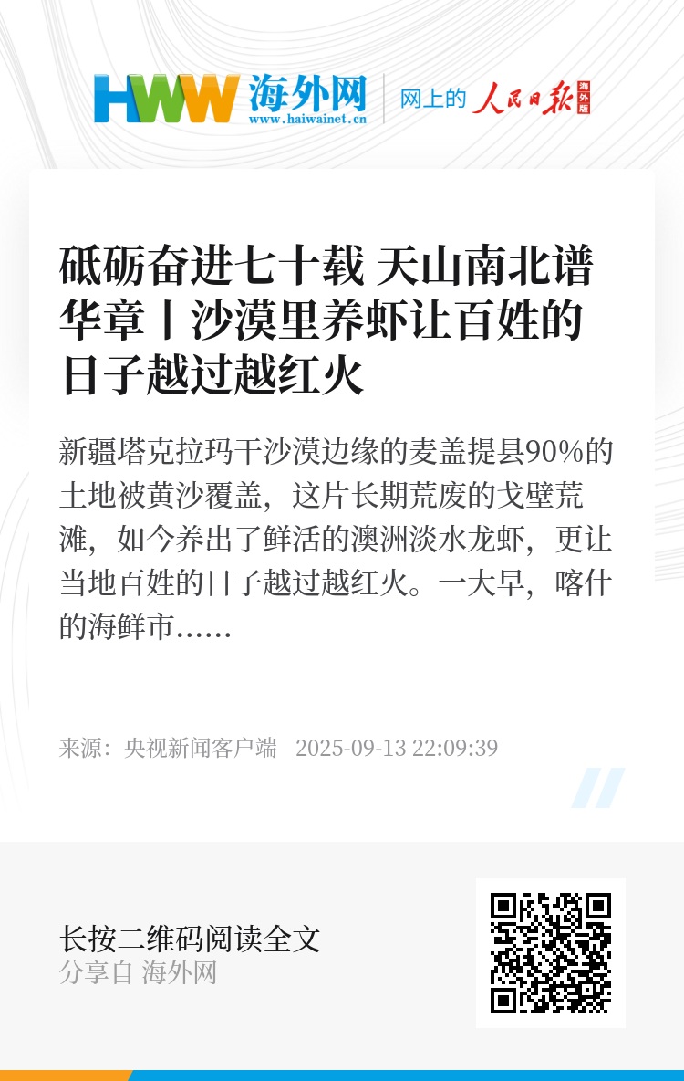 经过两年多的摸索,2024年虾苗存活率大幅提升,一上市就被抢购一空。如今养殖规模扩大到160亩,100多个像努尔艾合买提这样的当地百姓加入养虾队伍,靠着沙漠里的水产业,日子越过越红火。