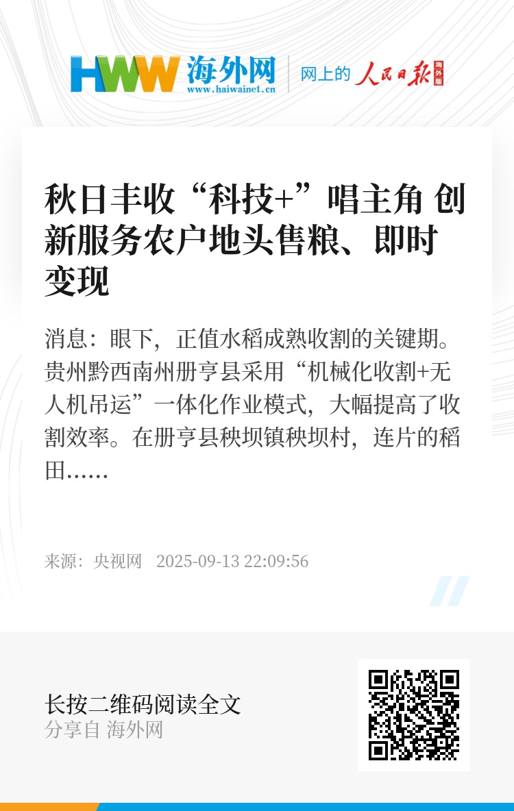 央视网消息:眼下,正值水稻成熟收割的关键期。贵州黔西南州册亨县采用“机械化收割+无人机吊运”一体化作业模式,大幅提高了收割效率。