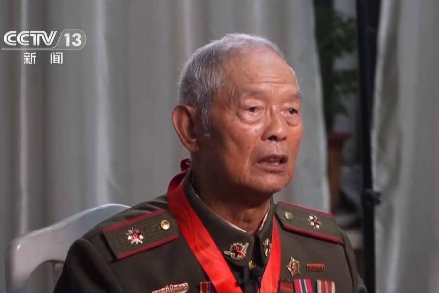 在迎回仪式现场,身着戎装、胸佩勋章的中国人民志愿军老战士何临弟凝望着战友的棺椁,泪水划过苍老的脸庞。1950年,年仅13岁的他作为文艺兵入朝参战,在枪林弹雨中为前线战士慰问演出。在他的记忆中,前线时常遭遇敌机低空扫射,战士们看完演出就上战场。