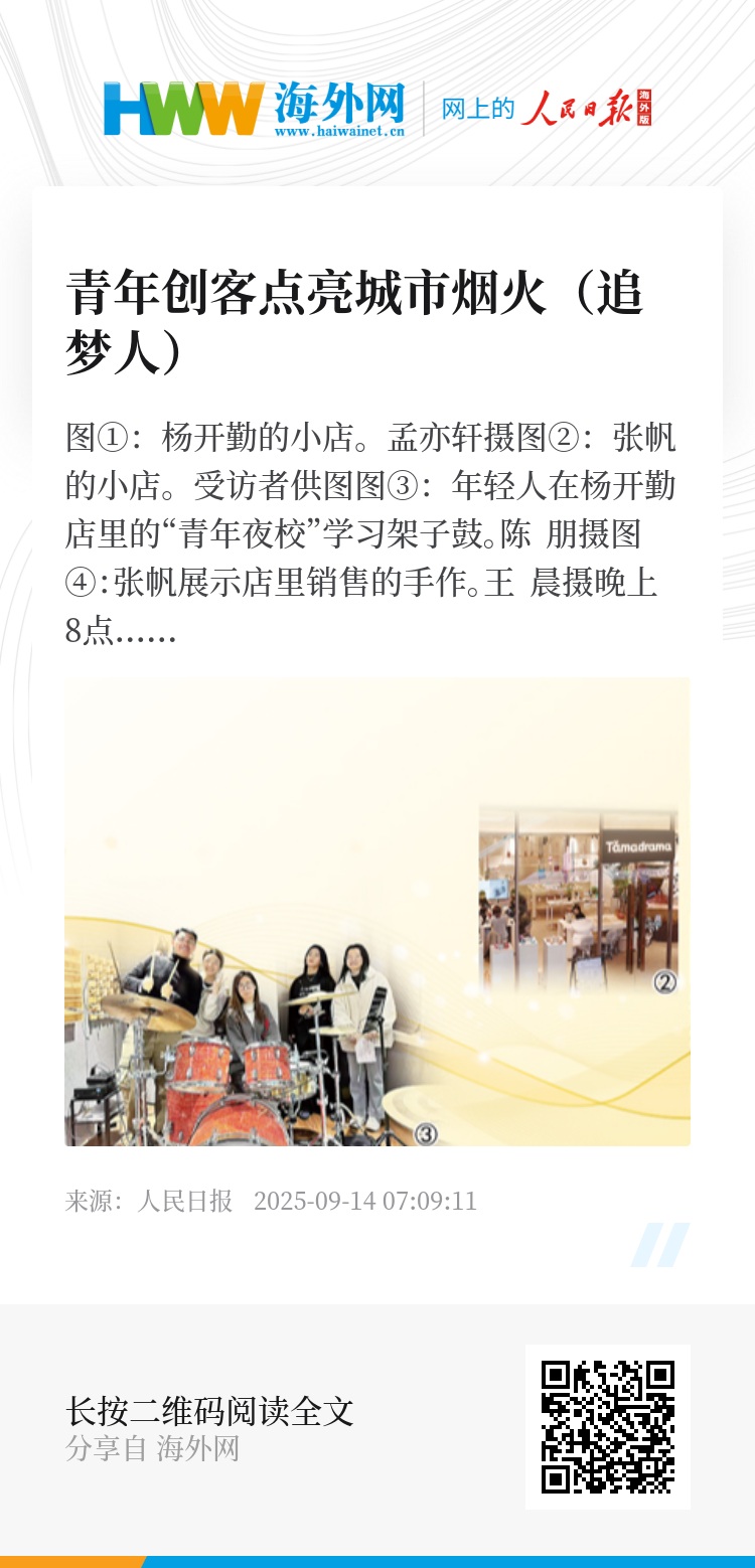 夜色渐深,Echo的门锁又一次被加班学员刷开,“Tǎmadrama退休市集”的直播灯依然亮着。两个90后女孩的创业试验,正在静安区编织的保障网中生长出超越商业的价值——那里既有架子鼓敲碎都市孤独的回响,也有年轻本土设计师创造的中国时尚。正如杨开勤在学员群里的留言:“这里不教考级,只教如何与热爱相处。”而张帆的市集宣言或许是最好的呼应:“年轻不该被年龄定义,创业也是。”静安区每家青春小店背后,都有青春的力量在涌动。(本报记者 黄晓慧)