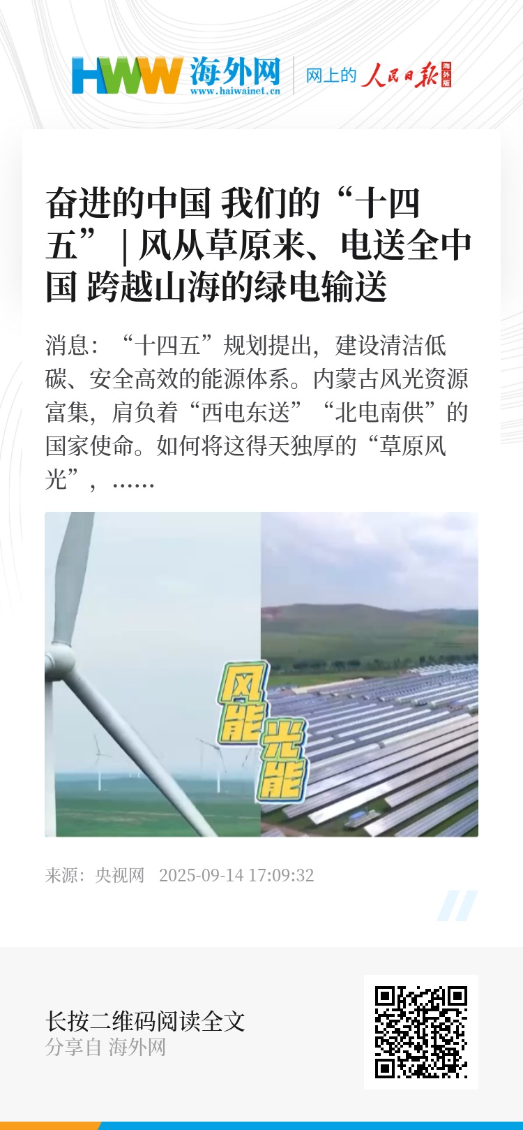 央视网消息:“十四五”规划提出,建设清洁低碳、安全高效的能源体系。内蒙古风光资源富集,肩负着“西电东送”“北电南供”的国家使命。如何将这得天独厚的“草原风光”,跨越千山万水,高效、安全地输送到千里之外?这背后,离不开稳定、可靠的电网系统。接下来,让我们一同聚焦内蒙古绿电外送,看内蒙古如何通过电网聚能,将清洁电能源源不断地输向全国。