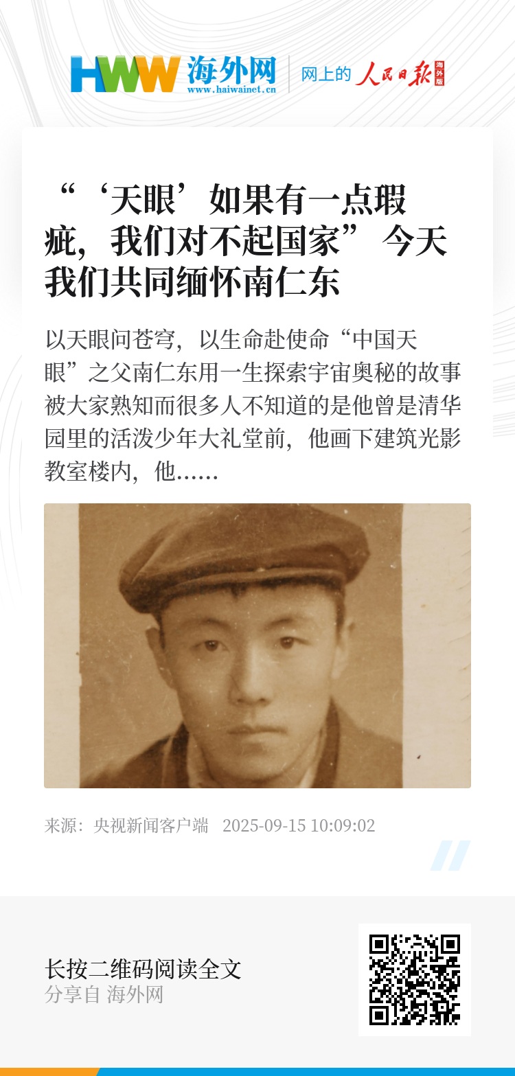 亦是对南仁东毕生坚守的深沉告慰