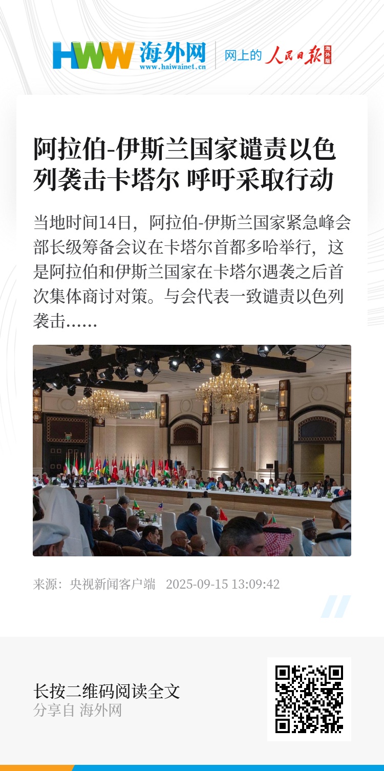 当地时间14日,阿拉伯-伊斯兰国家紧急峰会部长级筹备会议在卡塔尔首都多哈举行,这是阿拉伯和伊斯兰国家在卡塔尔遇袭之后首次集体商讨对策。与会代表一致谴责以色列袭击卡塔尔的野蛮侵略行为。