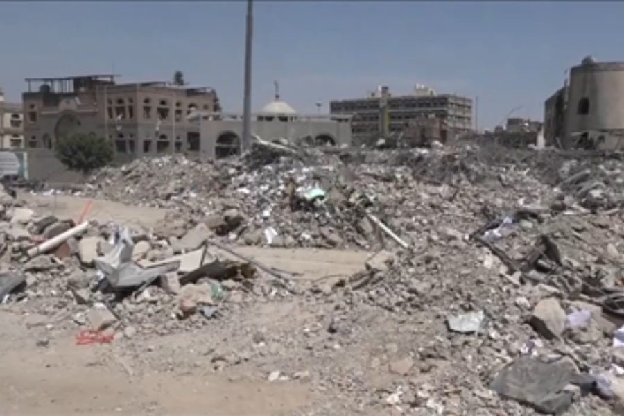 总台报道员 哈桑·巴姆什穆斯:日前,以色列对这里进行了猛烈的空袭,《九月二十六日报》和《也门报》的大楼瞬间被夷为平地,这座上下三层、面积庞大的大楼被彻底摧毁。这次袭击也破坏了东侧的市场和国家博物馆,同时波及了西侧的居民区。清理废墟的工作目前仍在进行中,人们仍在搜寻可能被埋在废墟下的遇难者。