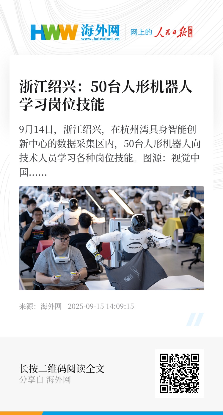 32894439,.浙江绍兴:50台人形机器人学习岗位技能,.2025-09-15 14:56:15,.204309,.陈亚楠、王珊宁