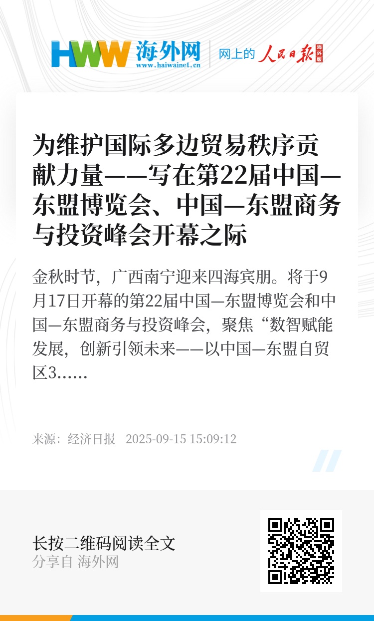 面对单边主义、保护主义对全球产供链带来的冲击,即将开幕的东博会、峰会,将进一步发挥交流合作平台功能,为凝聚东盟各方共识,维护自由贸易和多边贸易体制,服务加快构建更为紧密的中国—东盟命运共同体贡献新力量。(经济日报记者 童 政 臧 潇)