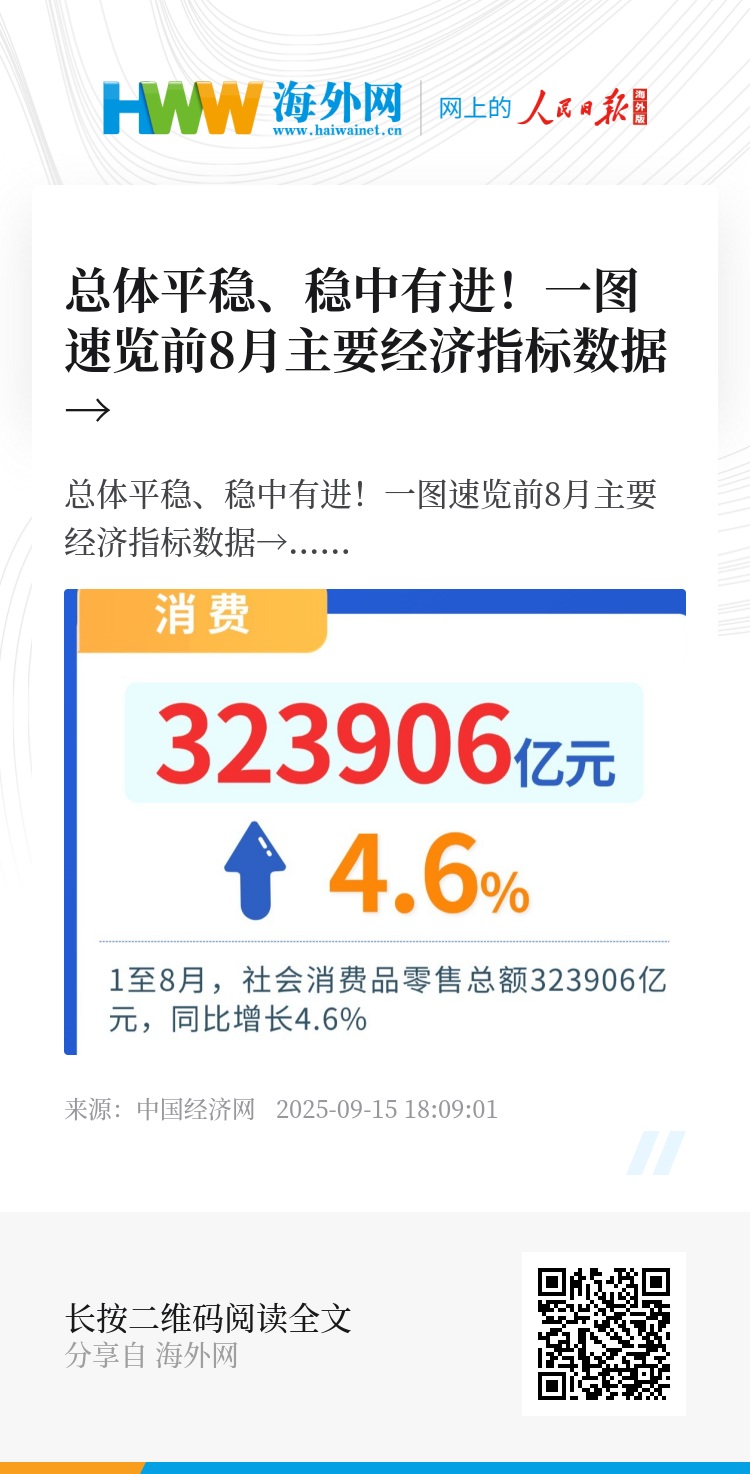 总体平稳、稳中有进!一图速览前8月主要经济指标数据→