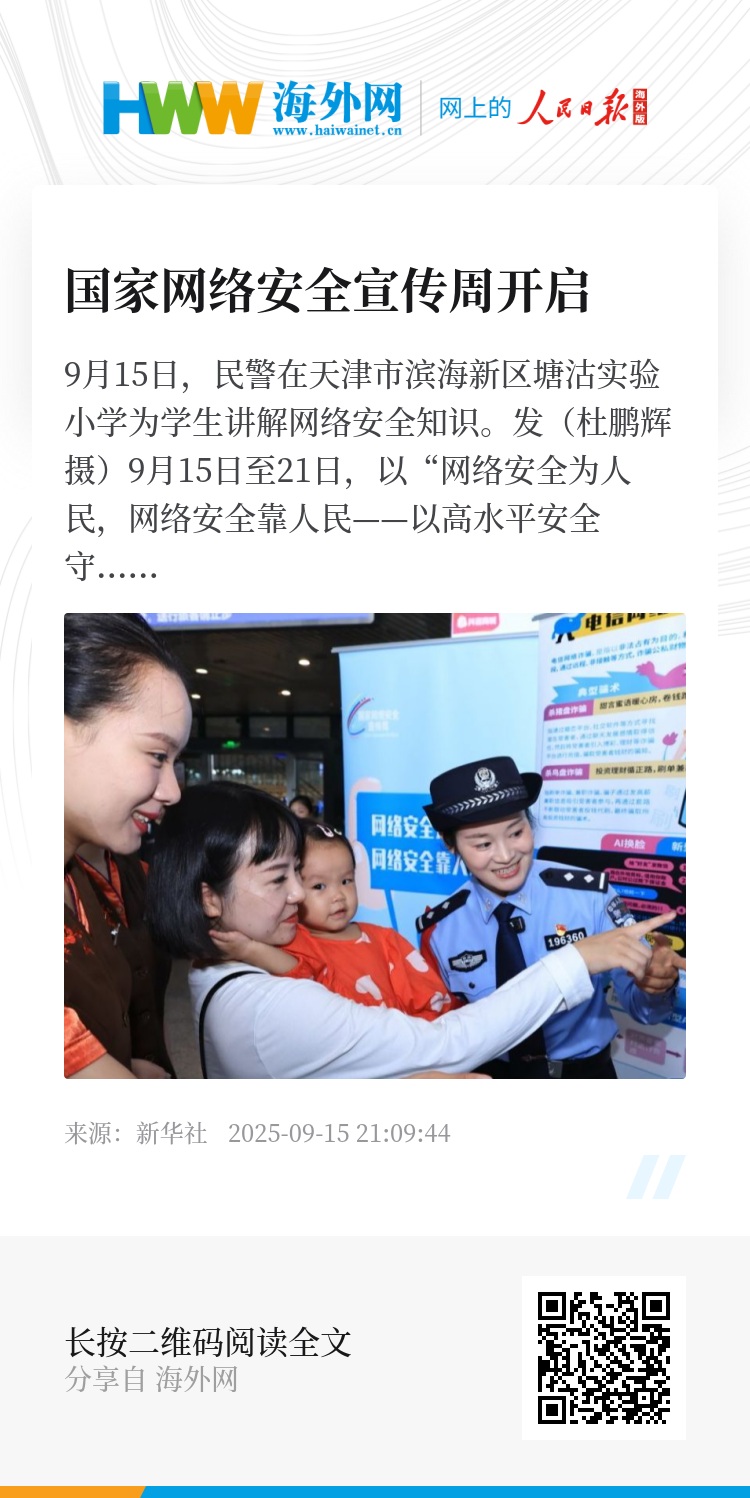 9月15日至21日,以“网络安全为人民,网络安全靠人民——以高水平安全守护高质量发展”为主题的国家网络安全宣传周在全国范围内开展。