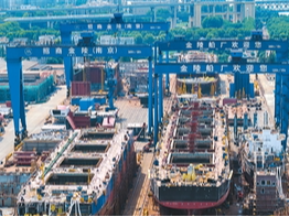 9月15日,在江苏省南京市招商工业南京金陵船厂内,船舶制造加紧推进。杨素平摄(新华社发)