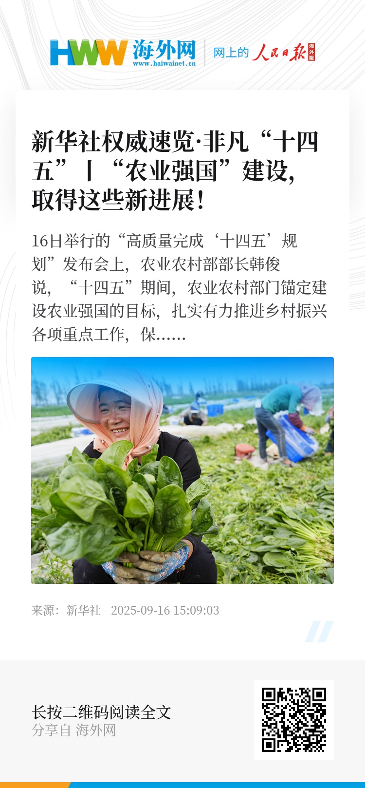 16日举行的“高质量完成‘十四五’规划”发布会上,农业农村部部长韩俊说,“十四五”期间,农业农村部门锚定建设农业强国的目标,扎实有力推进乡村振兴各项重点工作,保持了农业农村发展稳中有进、稳中向好的良好势头,为整个经济社会高质量发展提供了有力的支撑。让我们跟随海报,共同了解。