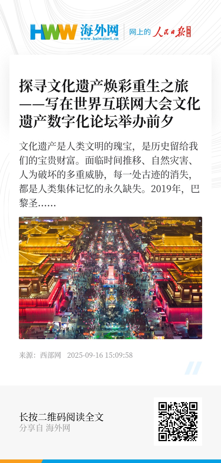 聚焦“保护”这一文化遗产数字化的首要任务,2025年世界互联网大会文化遗产数字化论坛以“数联古今 智绘文明——携手构建网络空间命运共同体”为主题,将于9月16日至17日在西安召开。