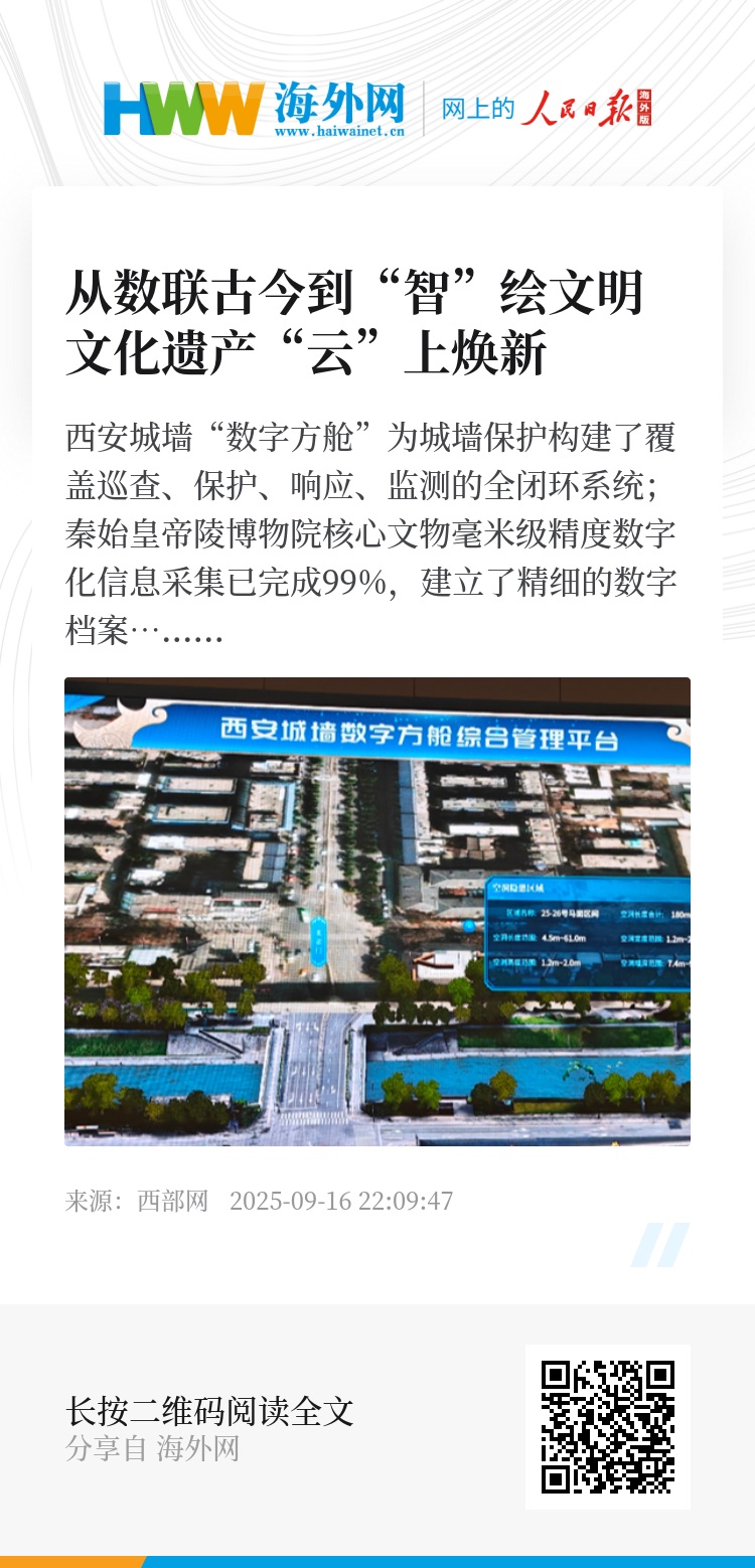 9月16日至17日,以“数联古今 智绘文明——携手构建网络空间命运共同体”为主题的2025年世界互联网大会文化遗产数字化论坛在西安举行。