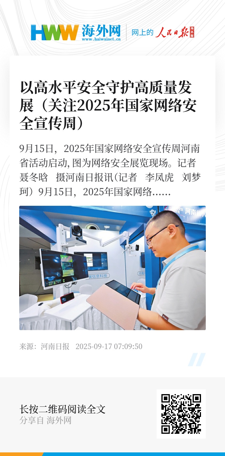 河南日报讯(记者 李凤虎 刘梦珂)9月15日,2025年国家网络安全宣传周河南省活动开幕式在商丘市举行。活动由省委宣传部、省委网信办、省教育厅、省工业和信息化厅、省公安厅、省通信管理局、省广播电视局、省总工会、团省委、省妇联、人民银行河南省分行、商丘市委、商丘市人民政府共同主办。