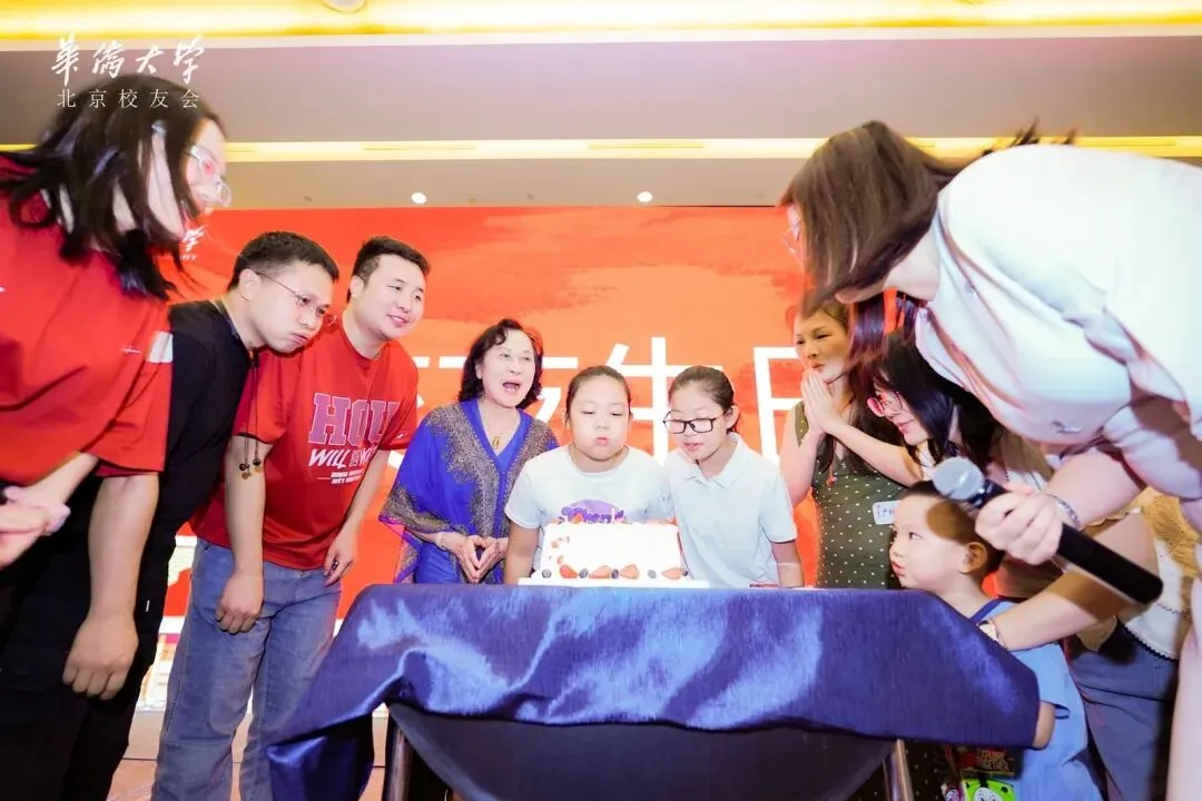 随后的校友生日会环节,温情氛围直接拉满。当月生日的,既有华大 62 级艺术系黄秀芬这样的前辈,也有“华二代”小寿星,现场校友们共同唱响生日快乐歌,伴着摇曳的烛光,大家一同为寿星们吹烛许愿,满室暖意格外动人。