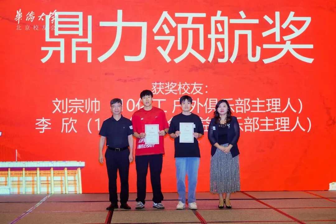 北京校友会副会长吴志成和顾星为活跃俱乐部主理人刘宗帅和李欣颁发鼎力领航奖;