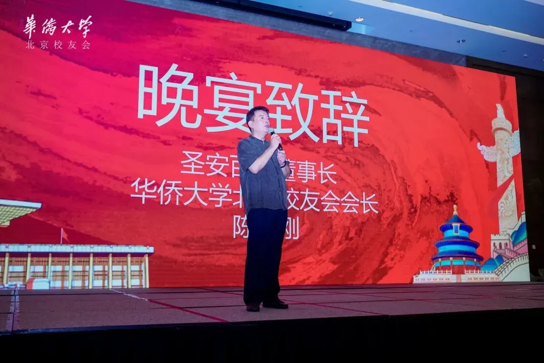 随后,全体校友和在场嘉宾共同收看2024-2025年度北京校友会的精彩回顾视频,华侨大学北京校友会会长、圣安百草创始人陈如刚对活动进行致辞。