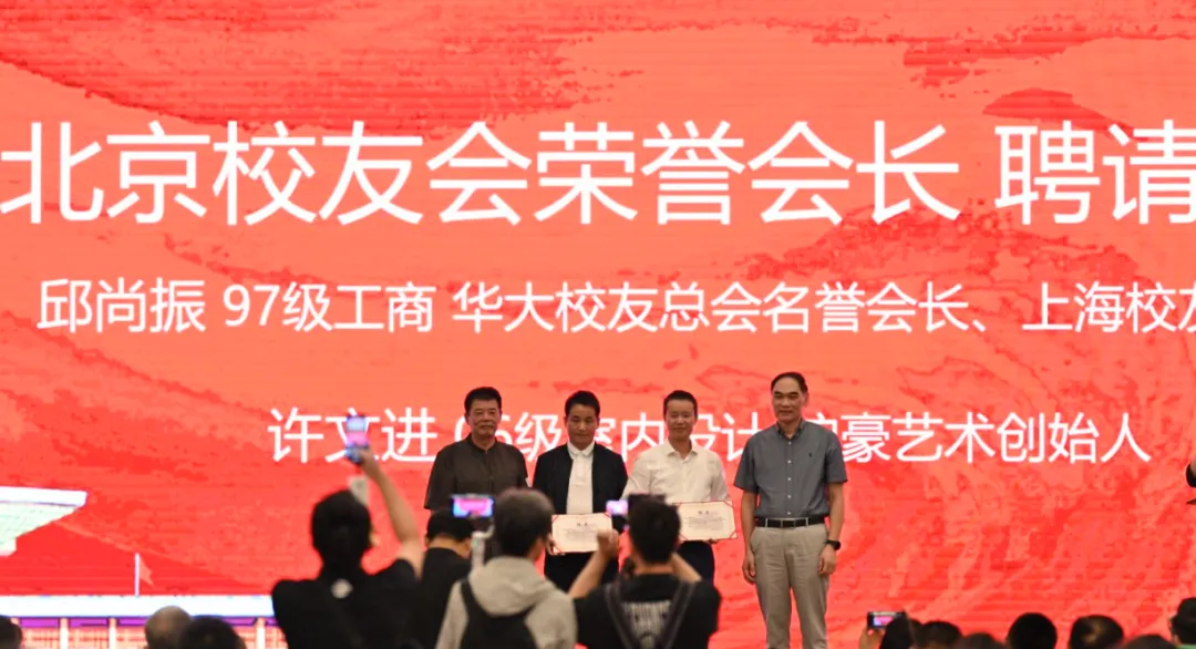 现场聘请上海校友会会长、厦门临家餐饮集团董事长邱尚振和沪濠艺术创始人许文进为北京校友会荣誉会长,由华侨大学北京校友会会长陈如刚和华侨大学副校长王秀勇共同为两位荣誉会长颁发聘书;