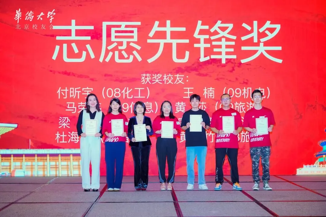 北京校友会副会长麻若馨为志愿筹备组织活动的校友颁发志愿先锋奖;