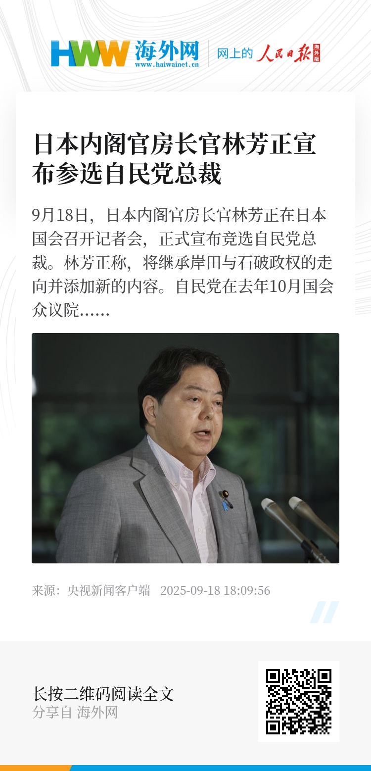 9月18日,日本内阁官房长官林芳正在日本国会召开记者会,正式宣布竞选自民党总裁。林芳正称,将继承岸田与石破政权的走向并添加新的内容。