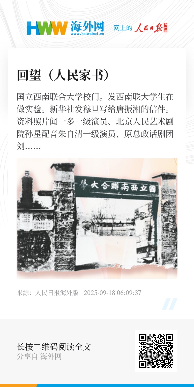 本期“人民家书”摘编了西南联大6位学人的珍贵家书,讲述家书背后的动人故事。他们以笔为矛、以学为盾,在艰难岁月中守护文化火种,用教育延续民族精神。值此中国人民抗日战争暨世界反法西斯战争胜利80周年之际,让我们重读这些珍贵的家书,在字里行间触摸那个年代知识分子的担当与坚守,重温中华民族在苦难中淬炼出的精神脊梁。