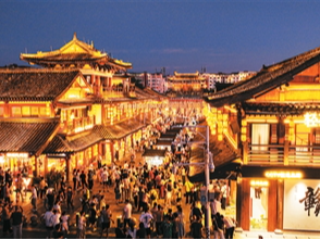 今年夏季,江西省赣州市推动消费场景创新,借助系列赛事活动打造“票根经济”,吸引八方游客前来旅游观光,带动消费市场持续火热。图为赣州市章贡区江南宋城历史文化街区。胡江涛摄(人民视觉)
