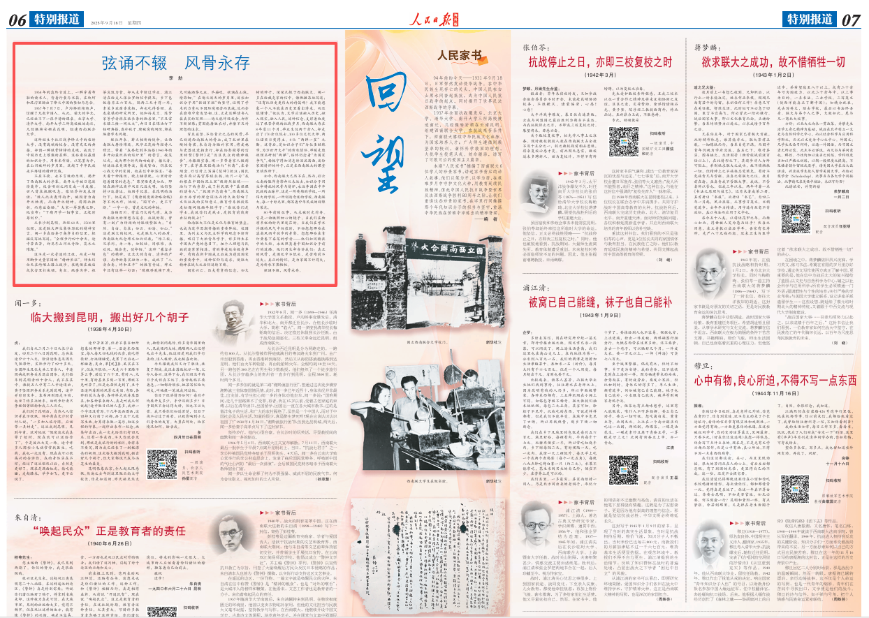穷且益坚、不坠青云之志的风骨,早已刻进西南联大的骨血,成了乱世里最硬的脊梁。朱自清为贴补家用,将皮袍与瓷器送进拍卖行,却在给彭桂萼的信里称赞《警钟》是“边区民众的精神粮食”。为躲避空袭,闻一多带着家人搬到乡下,在茅屋里搭起油灯“书斋”,在香烟盒、旧信封上写满《楚辞》批注;国民党当局以高官厚禄拉拢,他只一句“我的根在中国的泥土里”便断然拒绝——油灯下的身影,成了村民眼中“最倔强的读书人”。“救国不忘读书”,西南联大后方办学的理念深远而持久地影响了文化抗战的实际意义。教育学系教授陈友松题词勉励年轻学子:“谁说你们是学士,我说你们是战士,是教育前线新出征的战士!”