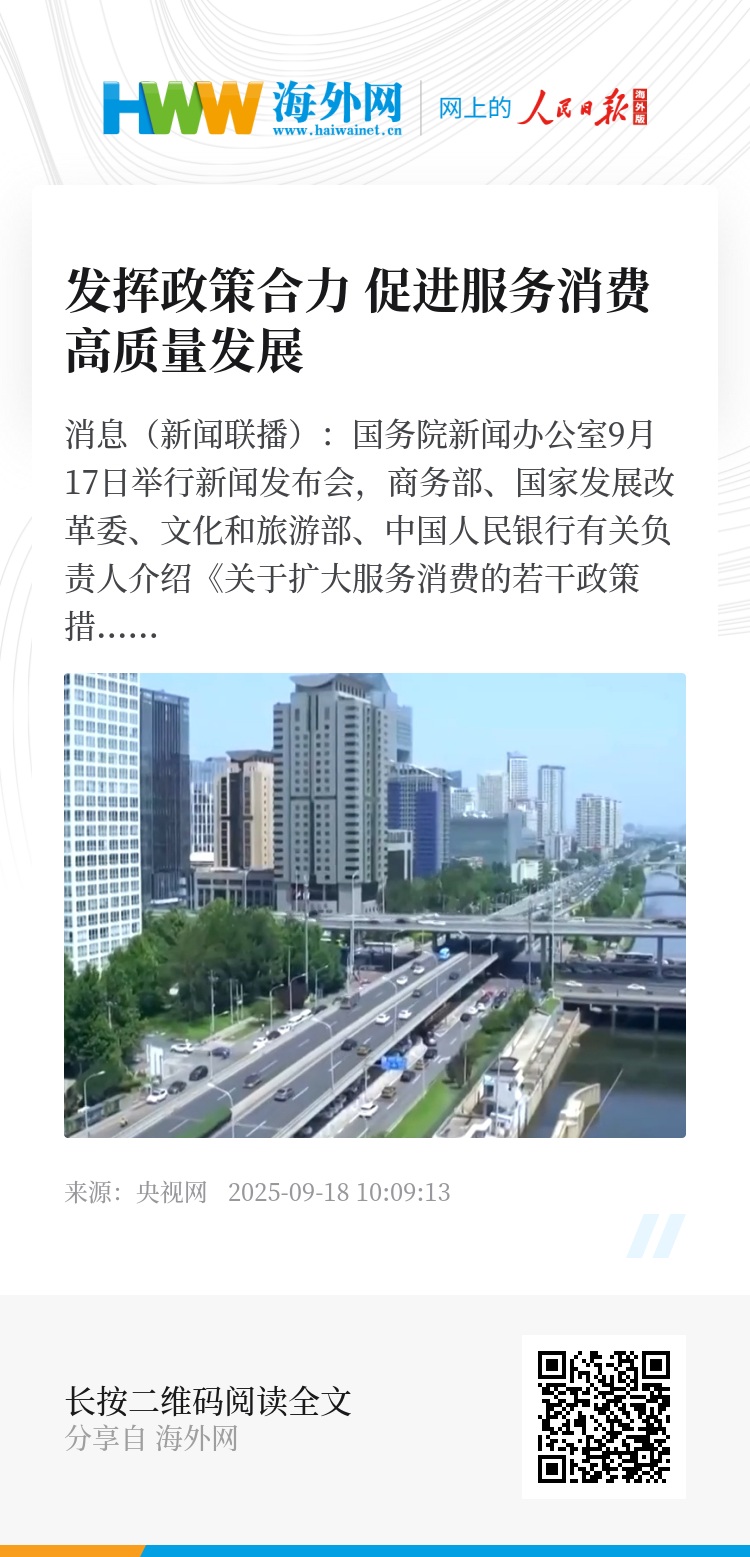 央视网消息(新闻联播):国务院新闻办公室9月17日举行新闻发布会,商务部、国家发展改革委、文化和旅游部、中国人民银行有关负责人介绍《关于扩大服务消费的若干政策措施》(以下简称《政策措施》)主要内容。