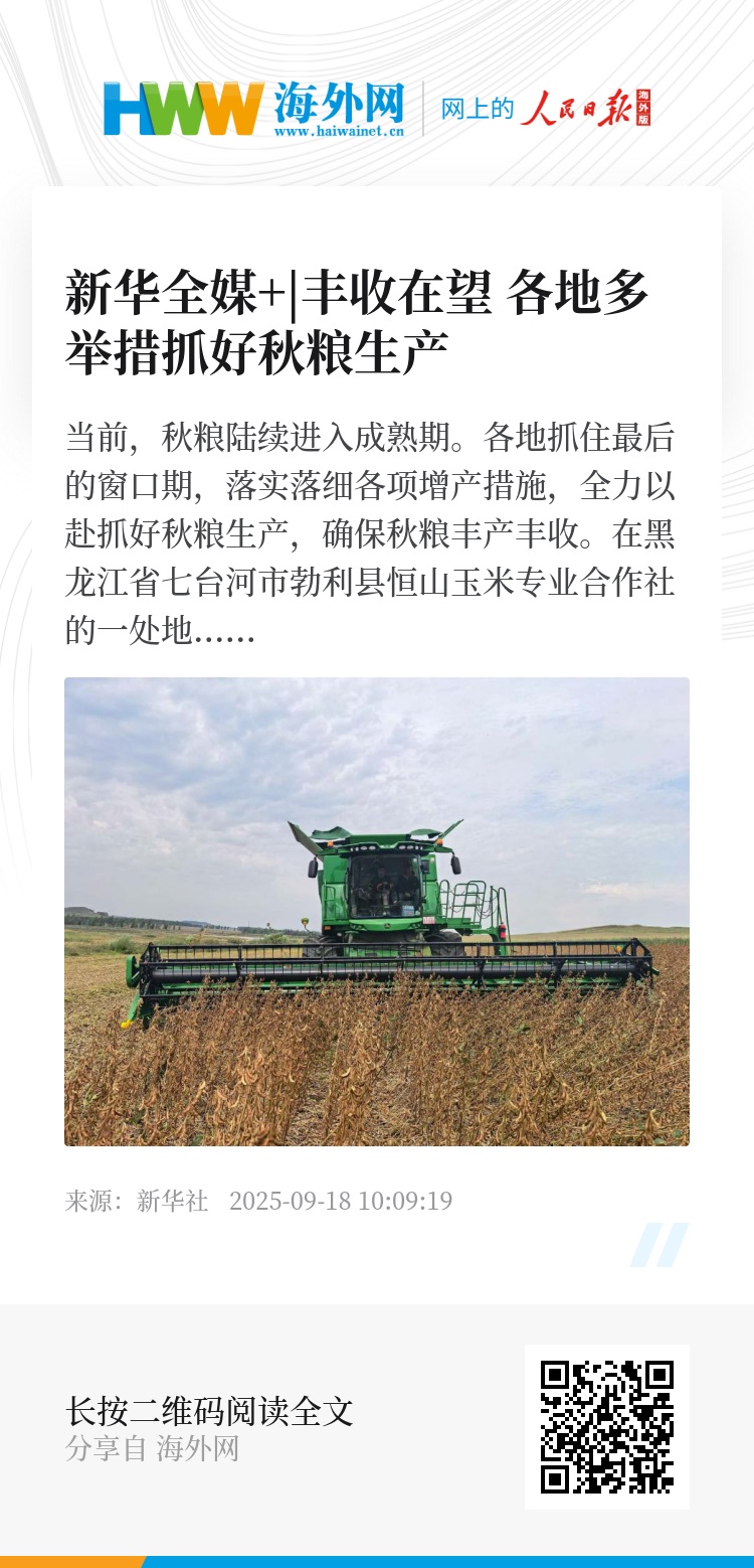 当前,秋粮陆续进入成熟期。各地抓住最后的窗口期,落实落细各项增产措施,全力以赴抓好秋粮生产,确保秋粮丰产丰收。