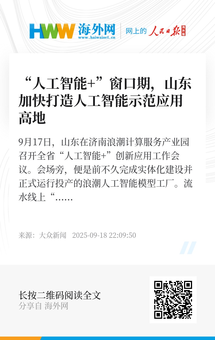 以“三张券”敲开“一扇窗”,有山东特色的人工智能发展之路愈发清晰。在人工智能重塑产业格局的澎湃浪潮中,以“快”抢得先机,以“准”深化优势,山东加快打造人工智能示范应用高地,为经济社会高质量发展注入强劲动能。