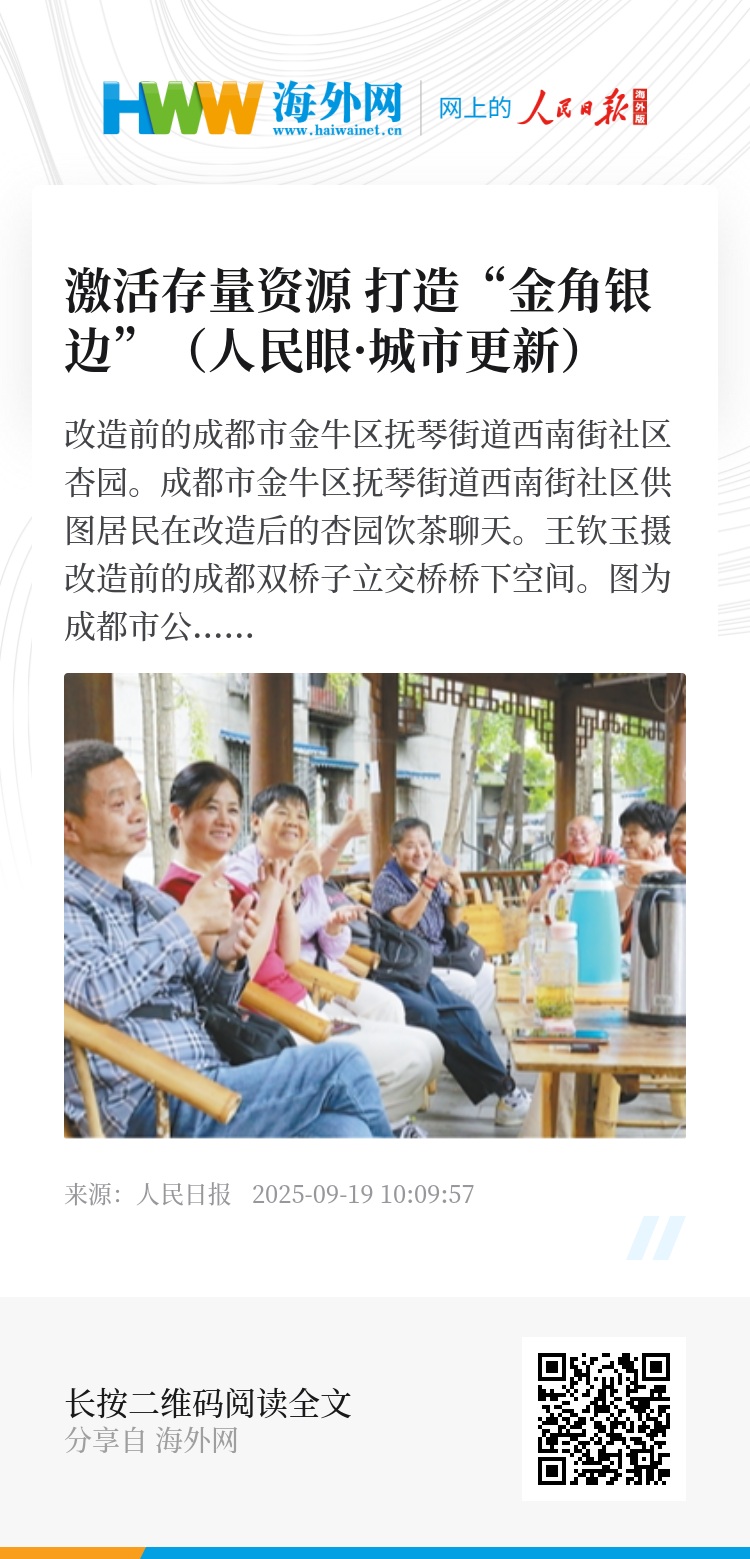 践行人民城市理念,截至去年底,成都累计打造“金角银边”848处。今年3月,住房和城乡建设部公布第二批城市更新典型案例,成都市相关经验做法入选。