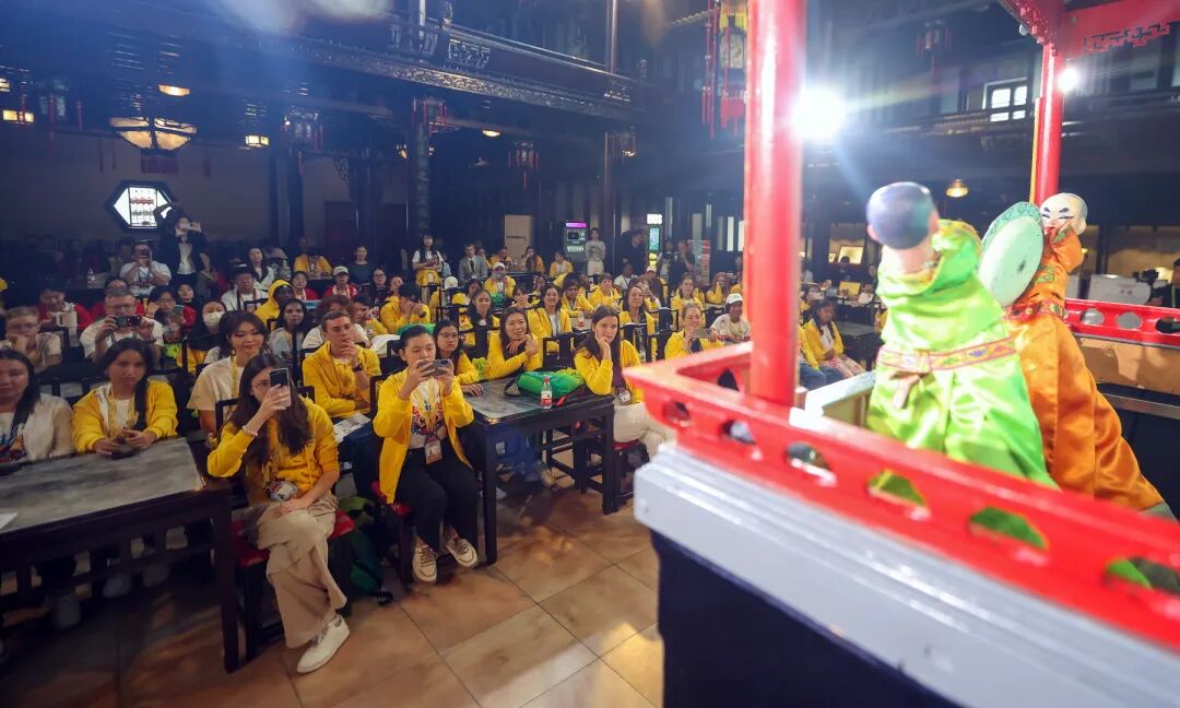 在充满历史韵味的广东会馆内,各式木偶陈列其中。作为拥有2000多年历史的传统戏剧,木偶戏以非遗杖头木偶戏和非遗扁担戏两种形式,向选手们展现其魅力所在。