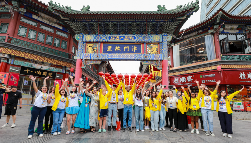 走进天津古文化街,串联的红灯笼和鳞次栉比的中式建筑让选手们发出阵阵惊叹。作为国家5A级旅游景区,古文化街内汇聚了十八街麻花等众多非遗和老字号品牌,还有各类特色美食,是感受“中国味、天津味、文化味、古味”的绝佳场所。