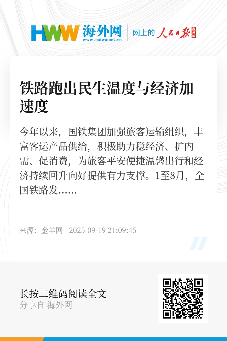 “流量密码”激活了经济复苏的强劲动能。32亿人次的客流量是拉动内需、促进消费的“引擎”。国铁集团瞄准旅游观光、生态康养、红色研学等需求,致力“火车向着景区开”。1至8月1551列旅游列车的开行量,同比增长26.1%的增幅,不仅点燃了旅游经济的热度,更带动了沿线餐饮、住宿、文创等产业的发展。“旅游列车+”经济正在一步一步拓展出消费新场景,银发专列正蓄力释放经济潜力。铁路就像经济的毛细血管,既保障人员流动又促进商品流通,这种高效畅通的运输体系正发挥着独特作用。从服务创新到经济拉动,印证着民生温度与经济脉动从来都是相辅相成的。