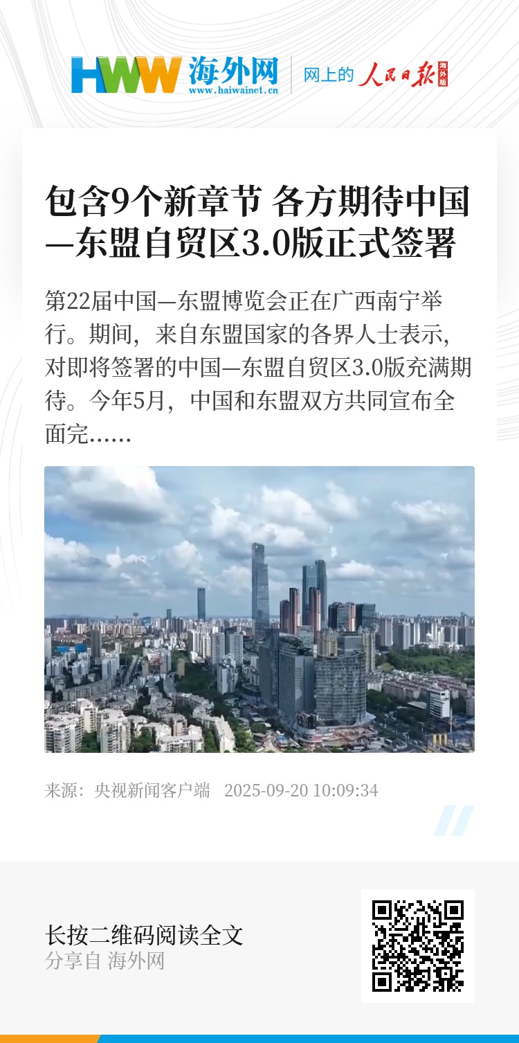 东盟秘书长 高金洪:升级为3.0版,我认为将使双方经贸合作迈向新的高度,不仅巩固已有合作,还将不断拓展。在当今复杂的全球经济形势下,这对中国和东盟都非常重要。