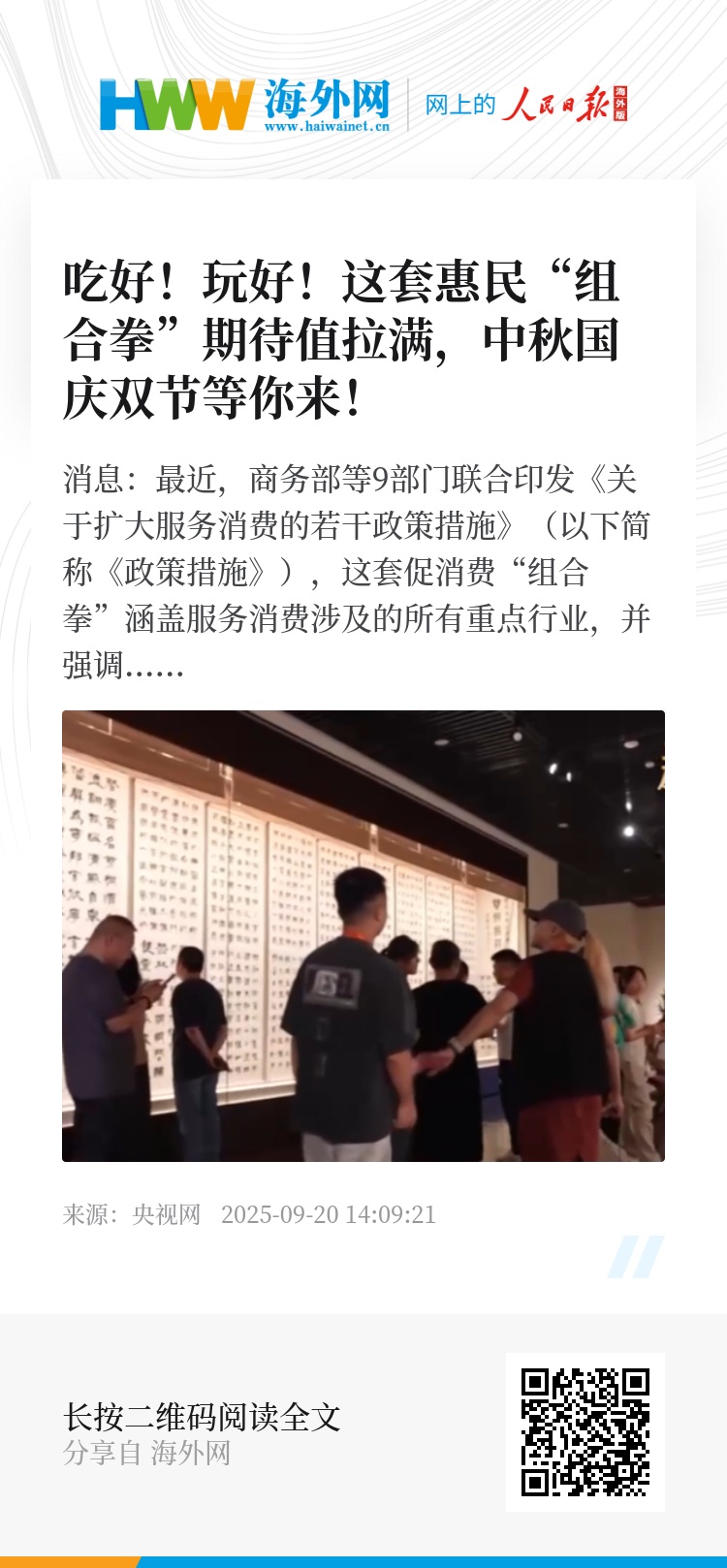 最近,商务部等9部门联合印发《关于扩大服务消费的若干政策措施》,以上这些玩法一个不落,政策里全有!这套促消费“组合拳”不仅把服务消费涉及的重点行业,餐饮住宿、文博赛事、演艺影视、动漫游戏等挨个儿点到,还强调要优化消费环境,推动提质惠民。这意思就是,创造条件让大家玩儿起来,让这些行业红火起来。大家玩得划算玩得开心,玩出新花样、玩出高质量,进一步拉动经济发展。