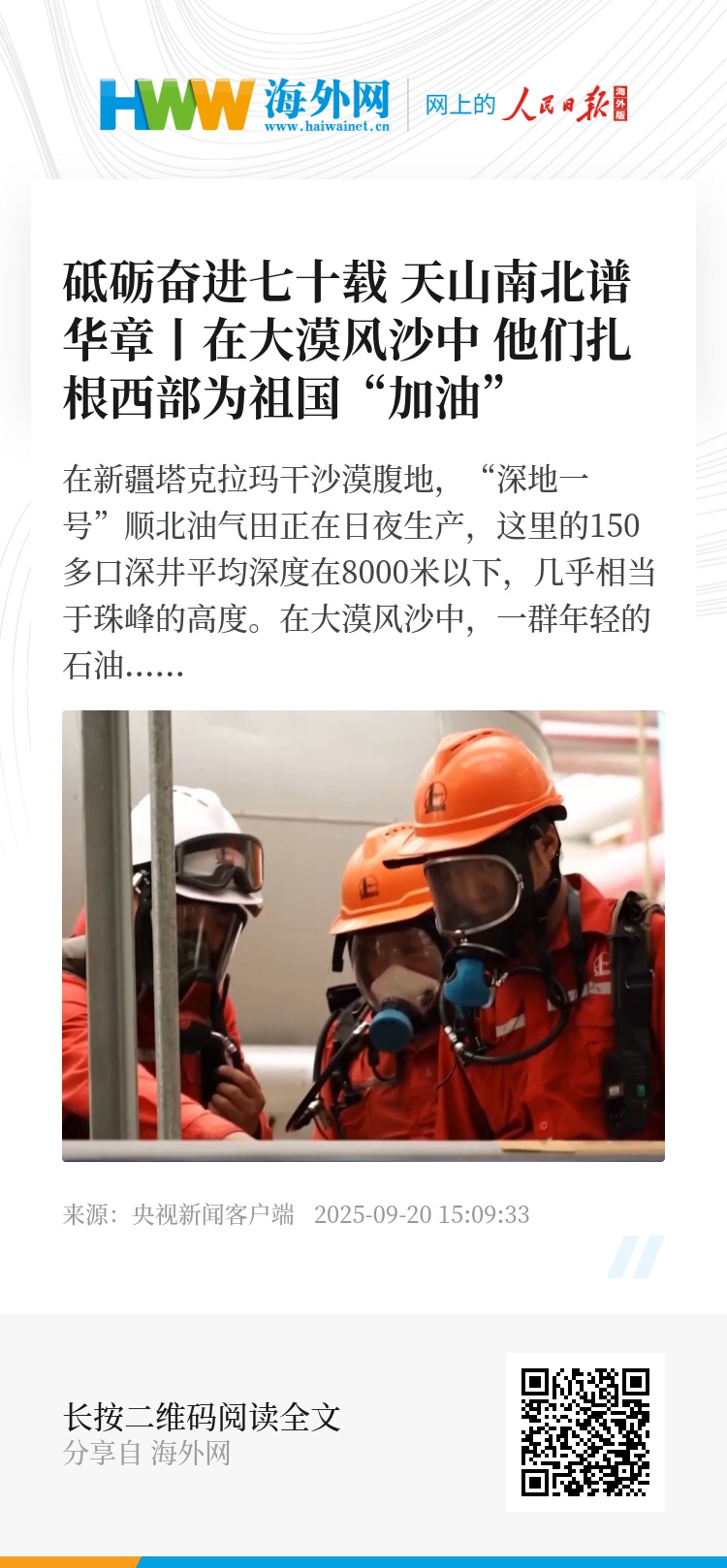 总监制丨张勤监制丨王琰 岳群制片人丨朱继华记者丨张芊芊 常江摄像丨张程编辑丨张雨棣 张博 张昊协拍丨新疆台 中国石化