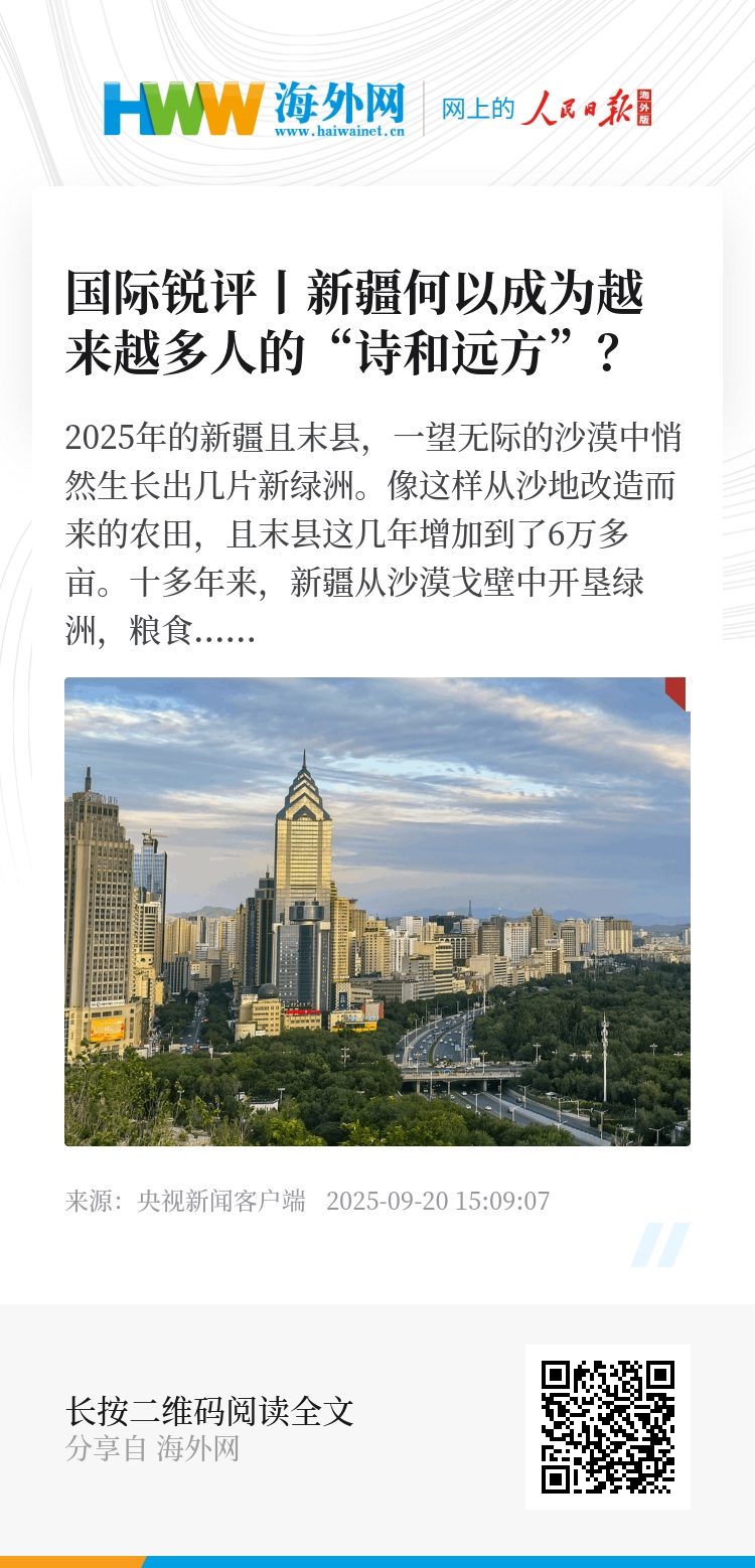 而一个稳定、发展、开放的新疆,正成为越来越多人的“诗和远方”。2024年,新疆接待境外游客超500万人次,同比增长46%。这些境外游客也成了新疆发展故事的见证者。美国网红丹尼·海防说:“我们从西方媒体中看到的通常不是正面的故事,现在沉浸在新疆积极向上的氛围中真是太好了!”澳大利亚《亚太防务报道》主编伯格曼参观新疆后表示,能清晰地感受到当地历史和文化得到了充分尊重。
