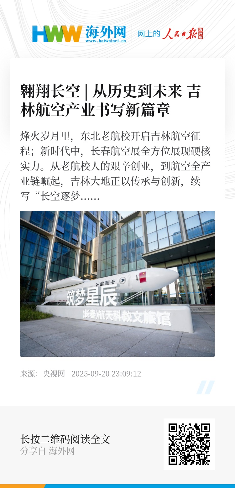 坚实的科普离不开产业的“地基”。据了解,目前吉林在航空航天产业领域成果丰硕,构建起较为完整的航空航天全产业链发展格局。一批优质航空航天龙头企业及几百家配套企业不断涌现,产业总产值稳步攀升。从基础设施完善到产业生态融合,吉林正以扎实的产业根基,在历史与未来的交汇中不断书写航空强国新的篇章。
