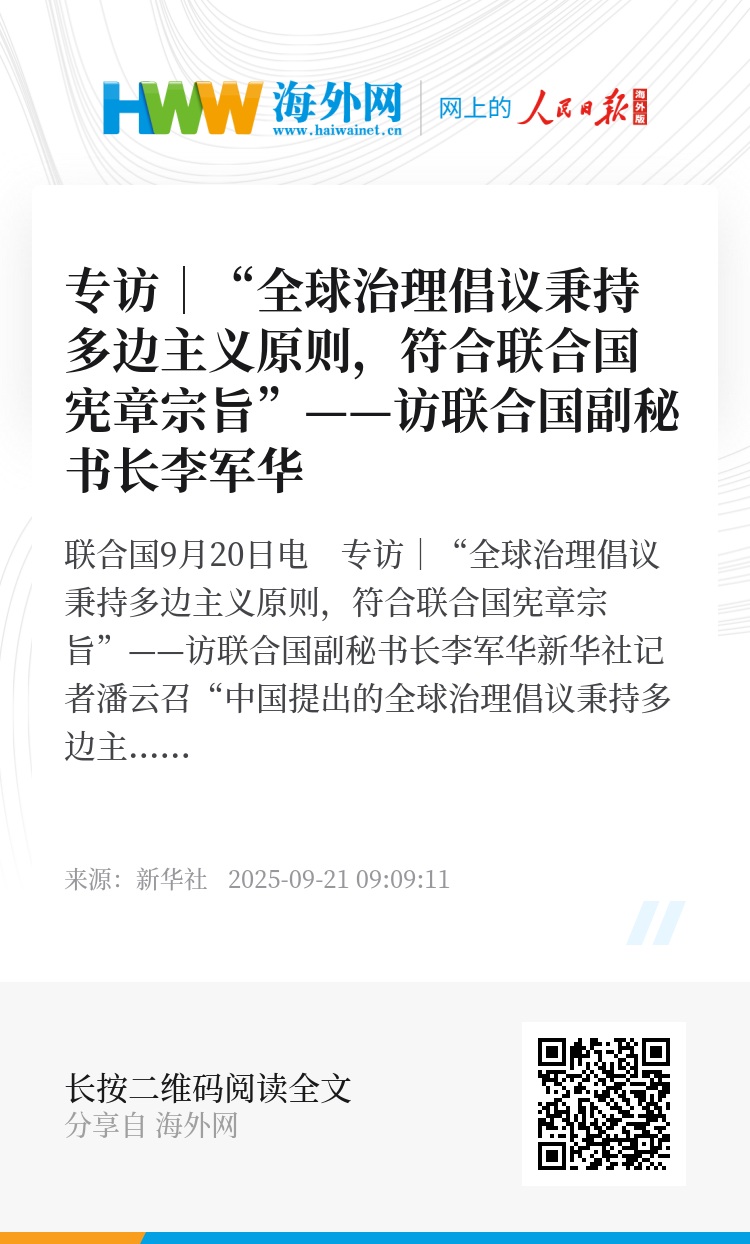 新华社联合国9月20日电 专访|“全球治理倡议秉持多边主义原则,符合联合国宪章宗旨”——访联合国副秘书长李军华