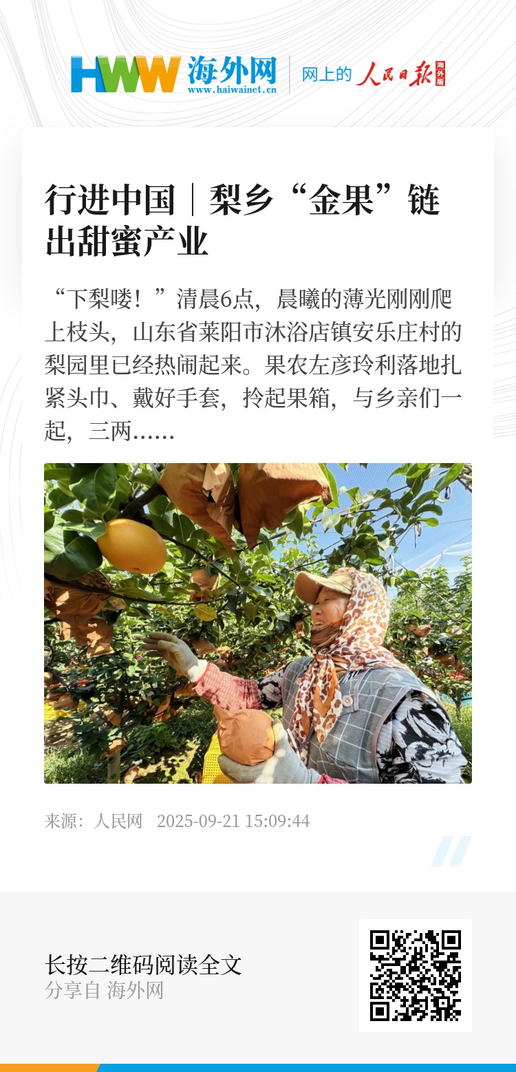 产业振兴路上,莱阳的梨产业正在“长”出新枝。线上平台订单提示音叮咚作响,深加工车间里梨香浓郁——一条条产业链自果园向外延伸,早已跨越田间,迈向更广阔的天地。