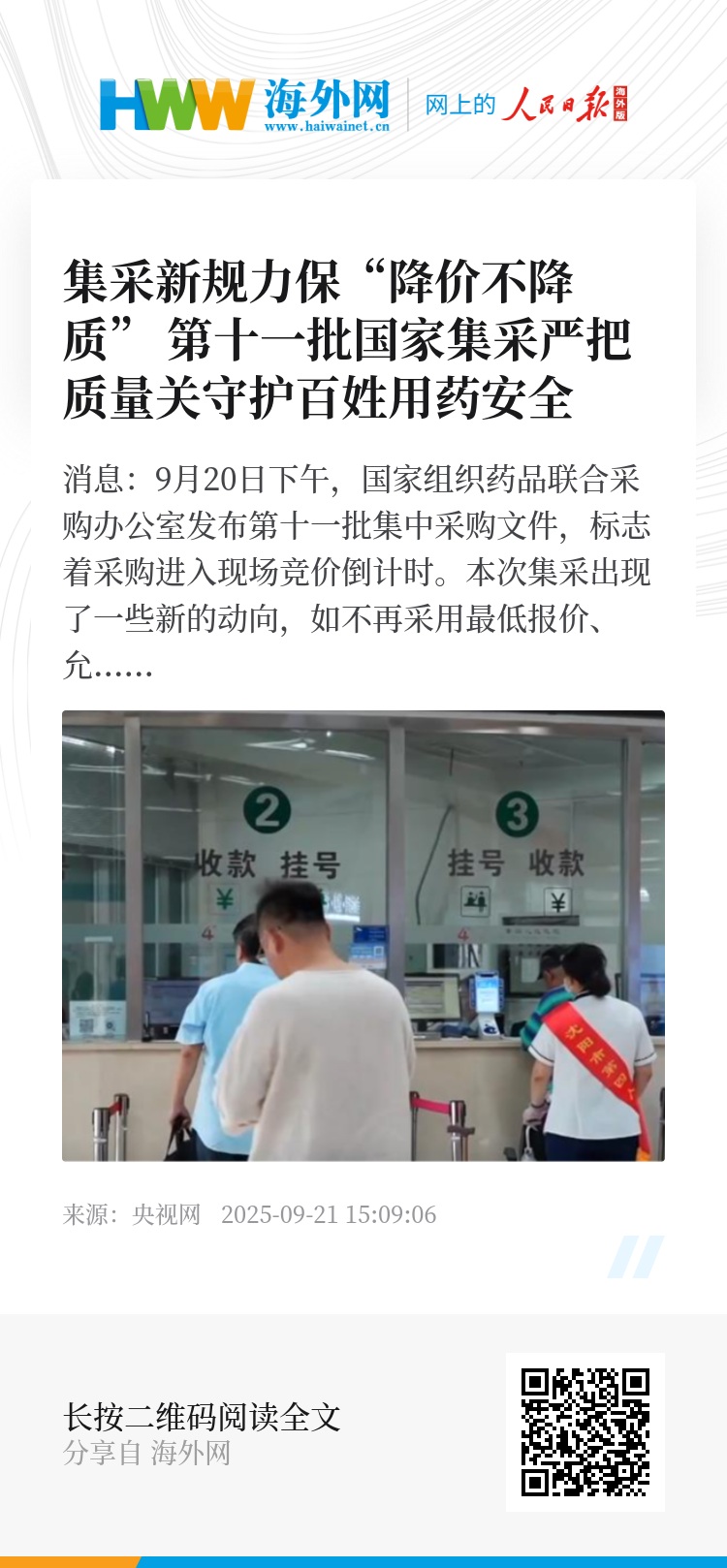 央视网消息:9月20日下午,国家组织药品联合采购办公室发布第十一批集中采购文件,标志着采购进入现场竞价倒计时。本次集采出现了一些新的动向,如不再采用最低报价、允许医疗机构按厂牌报采购量,要求异常报价企业提交报价合理性声明等,一起来了解。