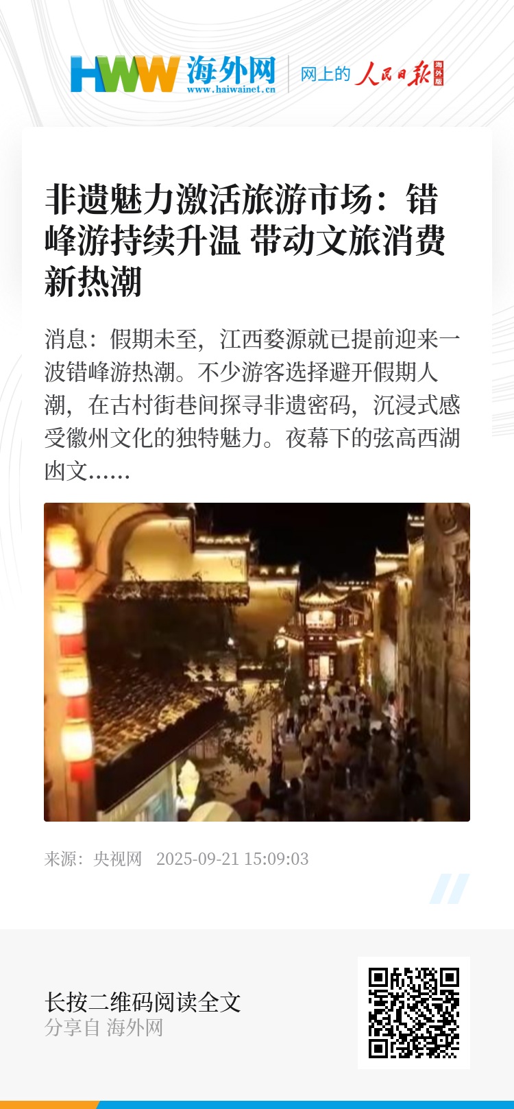 央视网消息:假期未至,江西婺源就已提前迎来一波错峰游热潮。不少游客选择避开假期人潮,在古村街巷间探寻非遗密码,沉浸式感受徽州文化的独特魅力。
