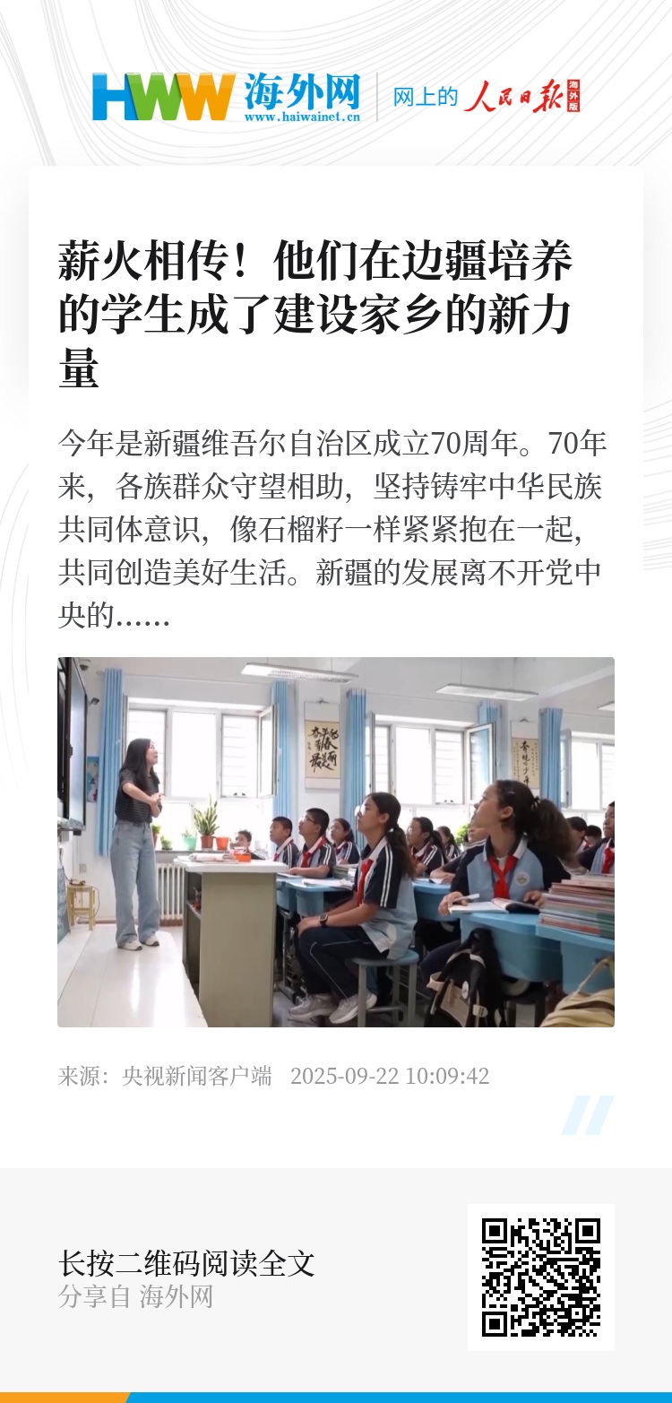 今年是新疆维吾尔自治区成立70周年。70年来,各族群众守望相助,坚持铸牢中华民族共同体意识,像石榴籽一样紧紧抱在一起,共同创造美好生活。新疆的发展离不开党中央的大力支持和全国人民的无私帮助。25年前,河北保定学院的15名大学毕业生响应国家号召,来到且末投身教育。