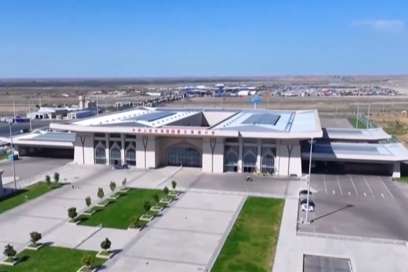 总台记者 宋文瑾:就在2018年9月27日,第六代国门拔地而起,成为霍尔果斯最亮眼的新地标。