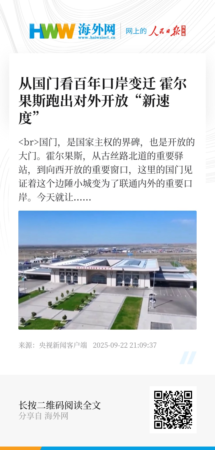 国门,是国家主权的界碑,也是开放的大门。霍尔果斯,从古丝路北道的重要驿站,到向西开放的重要窗口,这里的国门见证着这个边陲小城变为了联通内外的重要口岸。今天就让我们跟随总台记者,穿过国门的“时空隧道”,看霍尔果斯如何跑出对外开放“新速度”。