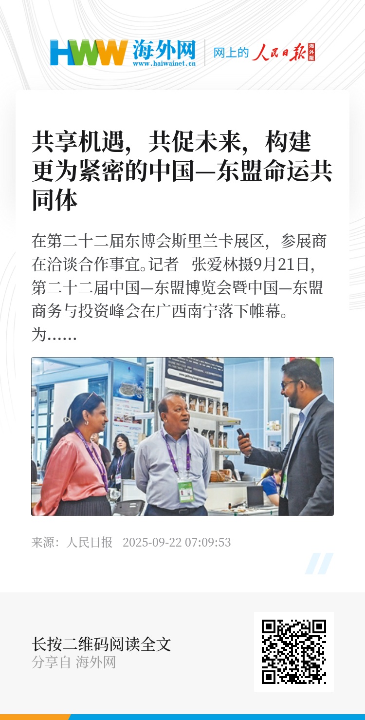 9月21日,第二十二届中国—东盟博览会暨中国—东盟商务与投资峰会在广西南宁落下帷幕。为期5天的东博会吸引了来自全球60个国家和地区的3260家企业参展,累计参展人次达22.6万,创历史新高。截至9月20日,据不完全统计,本届东博会共取得成果超700项,其中经贸项目签约超500项,多领域、多形式成果超270项。与会多国人士认为,中国东盟合作领域不断拓展,友好合作更加深入人心,为构建更为紧密的中国—东盟命运共同体注入新动能。