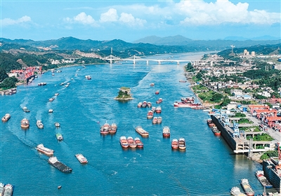 广西壮族自治区梧州市万秀区的西江被称为“黄金水道”,是中国西南地区出海水路大通道,承载广西内河航运90%的运量。图为近日西江往来货运繁忙。