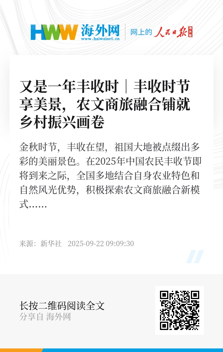 金秋时节,丰收在望,祖国大地被点缀出多彩的美丽景色。在2025年中国农民丰收节即将到来之际,全国多地结合自身农业特色和自然风光优势,积极探索农文商旅融合新模式,为乡村振兴注入秋日活力。